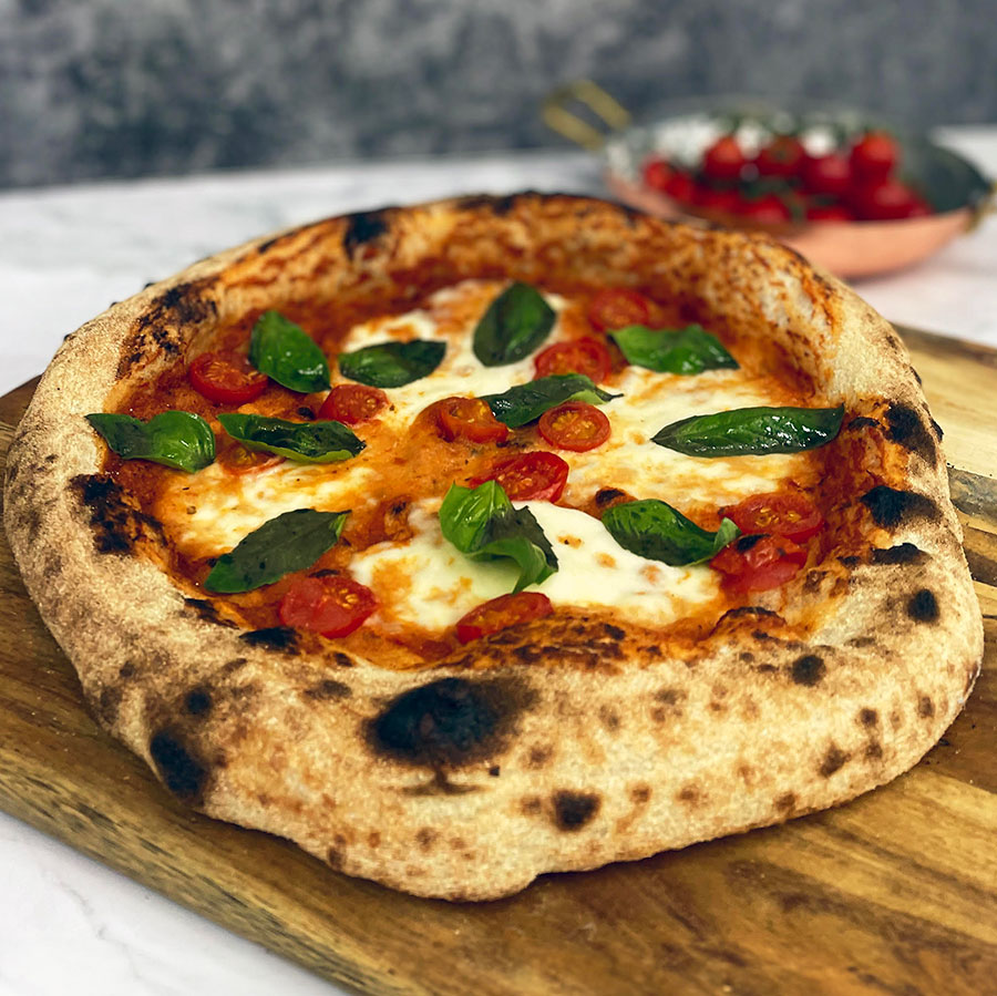 This produces a pizza with a slightly charred leopard-spotted crust with a crispy exterior and a soft, airy bubbly interior. This charring creates a slightly bitter flavour to the crust, coupled with a soft, chewy texture that’s iconic of the original Neapolitan pizza.